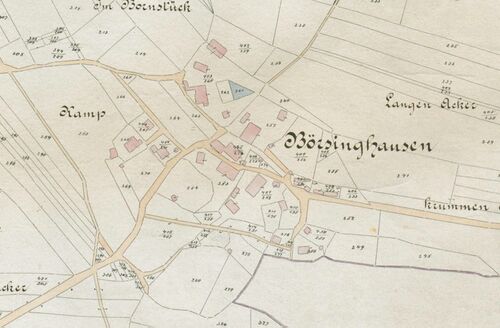 - 1806/1807: Holthausen, Börsinghausen und Oestrich gehören zur kath. Pfarrgemeinde St. Lambertus zu Castrop. Börsinghausen hat 9 katholische und zwei reformierte Haushaltungen.[5]