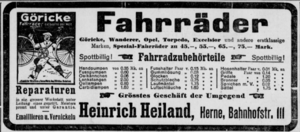 1899 gründete hier - als Fahrradlädchen - Heinrich Heiland sein Unternehmen, bevor er 1913 zur oberen Bahnhofstraße zog.