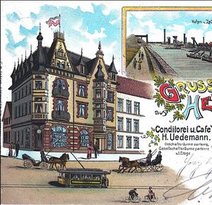 Johann Heinrich Uedemann war ein bekannter Conditor (Zuckerbäcker) und erbaute das Gebäude 1895 nach seinen Wünschen in der Nähe des Herner Bahnhofes.