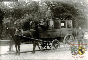 Das erst vor einigen Jahren gefundene Foto zeigt die Postkutsche, die am Eingang des damaligen katholischen Friedhofs an der Mont-Cenis-Straße, genau gegenüber dem imposanten Familiensitz steht. Der Friedhof ist heute längst eine städtische Grünanlage, und Georg parkt seinen Lieferwagen auch gerne dort, wo vor 105 Jahren das historische Lichtbild entstand. Clement abschließend: „Aus reiner Gewohnheit, denn eigentlich könnte ich ja auch auf dem Hof parken, dort ist ja Platz genug, denn den einstigen Pferdestall gibt es dort schon lange nicht mehr“. [4]