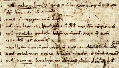 In uil(la) Hurlaon (= Hordel) Engilfrid XVIII mo(dios) ord(ei) VIII den(arios) her (iscilling) far(ine) II mo(dios).