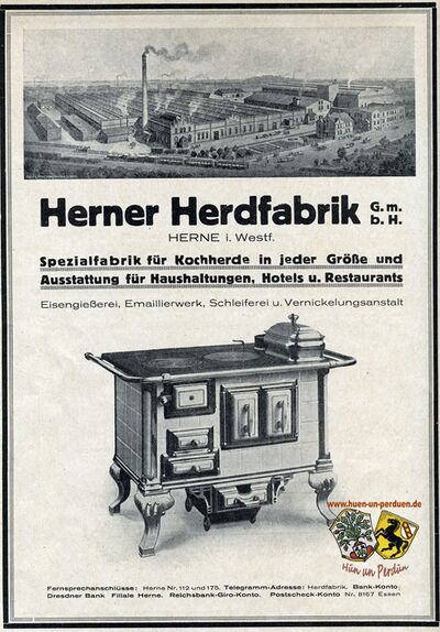 Die Herner Herdfabrik, G.m.b.H. stellt Kochherde aller Art her. Gegründet 1897 fertigte sie in 1900 rund 4000 und in 1911 rund 6500 Herde an. Die Zahl der Arbeiter betrug 1900 = 55 und 1911 = 74.