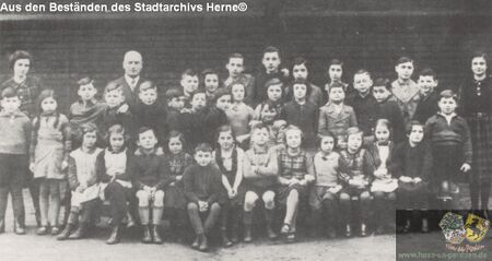 Ein besonderes Engagement der Herner Juden lässt sich im Musikleben dieser Stadt vor dem Ersten Weltkrieg feststellen. Damals besuchten bis zu zwanzig jüdische Schülerinnen und Schüler das Herner Konservatorium, um dort Klavier oder Geige zu erlernen. Einige von ihnen musizierten in der Herner Konzertgesellschaft, die gerade von jüdischen Kaufleuten finanziell unterstützt wurde. Trotz aller Gefahren besuchten während der Zeit der Weimarer Republik[2] bis zu 52 (1925) jüdische Kinder die weiterführenden Schulen in Herne. Nach der Machtübernahme 1933 setzte sich der Herner Oberbürgermeister Albert Meister (ein Lehrer, der wegen seiner faschistischen Aktivitaten 1931 aus dem Schuldienst entlassen worden war) im preußischen Landtag vehement dafür ein, dass die jüdischen Schülerinnen und Schüler die weiterführenden Schulen verlassen mussten. So nahm die Zahl jüdischer Schülerinnen und Schüler an diesen Schulen schnell ab und die der jüdischen Volksschulen entsprechend zu. In der Reichpogromnacht 1938 bereiteten die Nazis den jüdischen Schulen in beiden Städten ein schauriges Ende. Danach gab es in Wanne-Eickel nur noch drei jüdische Schulkinder, die nun die Schulen in Gelsenkirchen oder Bochum besuchen mussten. In Herne stellte der Arzt Dr. Gustav Wertheim sein Haus in der Heinrichstraße 6 als Schule zur Verfügung, doch als die Nationalsozialisten ihn 1941 in den Tod trieben, konnte auch hier kein Unterricht mehr stattfinden.