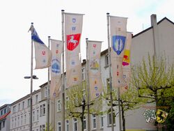 Der Vorschlag, eines Einbaus einer leichten Erhöhung, darauf Flaggen der Herner Partnerstädte, hatte die Bezirksvertretung am 17.06.2004 beschlossen.