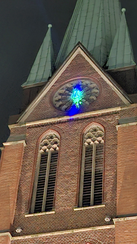 Pünktlich zum Neujahrsempfang der Stadt Herne im Januar 2026 begann diese temporäre Lichtinstallation, die den Stadtraum zwischen dem historischen Rathausbau und der katholischen Bonifatiuskirche mit einem farbigen Laserband visuell verband. Der Laserstrahl war insbesondere in den Abendstunden gut sichtbar und wurde von zahlreichen Bewohnern und Besuchern fotografiert und dokumentiert.