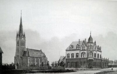 Im Herbst 1898 wurde mit dem Bau begonnen. 1899 fand die Grundsteinlegung für die evangelische Kirche statt. Die innere Ausstattung war aber noch nicht bereit, daher konnte erst am 28. März 1900 die Kirche eingeweiht werden.