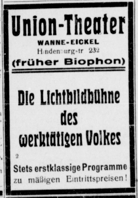 | 13:35, 6. Dez. 2025 | 1908-Bahnhofstraße Wanne-Biotophontheater.jpg (Datei) | 499 KB | Andreas Janik (Diskussion | Beiträge) | 1 | ||