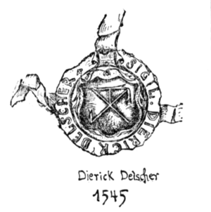 Zeugen: Nevelinck Pape und Hinrick Keilman, twe gehuldede gerichtz fronen, voirt Rutger Ernst Christofer Oevelgunne, stantgenoten des gerichtz to Boickum.