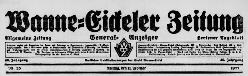 1897 Generalanzeiger für die Ämter Wanne und Eickel. 1918 Verschmelzung mit der Wanne-Eickeler Zeitung