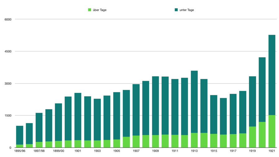| Jahr | über Tage | unter Tage | Gesamt |