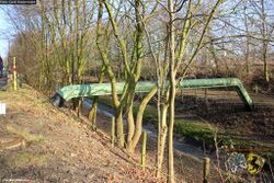 | ⚫ | Die Verlegung des Bachlaufs nutzte den ursprünglichen Sodinger Bach um das Wasser zur Emscher wieder nach Norden zu leiten. Der Bach wird westlich der Schleuse Herne-Ost in einem Düker unter dem Rhein-Herne-Kanal hindurchgeleitet, bevor er nördlich der [[Pöppinghauser Straße]] in die Emscher mündet. |
