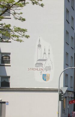 Die Straße ist benannt nach der Stadt Strehlen in Niederschlesien, der 1292 die Stadtrechte verliehen wurden.