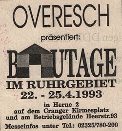[[Datei:Werbeanzeige Bautage WAZ 19930410.jpeg|250px|miniatur|Werbeanzeige in der WAZ am 10.04.1993 <ref name="STS">Sammlung Thorsten Schmidt</ref>]] |