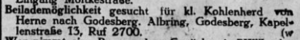 „Herne. Wie uns aus sicherer Quelle mitgeteilt wird, ist die Herner Eisenhütte (vormals Sickel u. Comp.) für den Betrag von 20.000 Mark vorbehaltlich höherer Genehmigung Seitens der Sparkassenverwaltung an Herrn Schmiedemeister Albrink verkauft. Es gehört jedoch zu dem verkauften Complex nicht das Hammerwerk. Hoffentlich sehen wir das Werk bald wieder im lebhaften Betriebe.“[4]