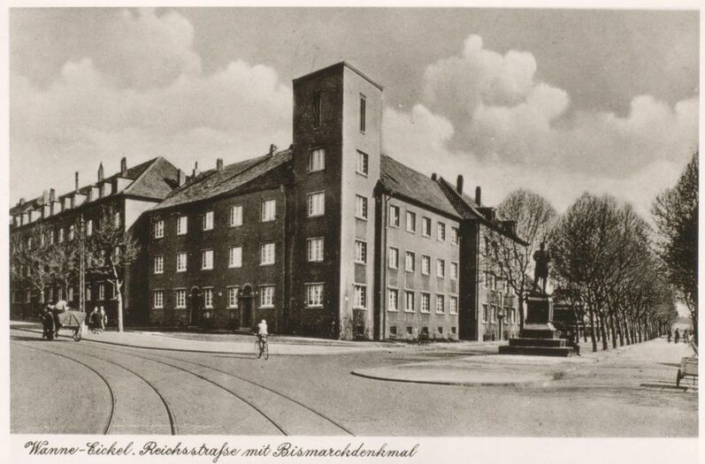 An der Reichsstraße/Ecke Hauptstraße feierten die Eickeler Patrioten am 26. Juni 1904 die Enthüllung ihres Denkmals für Reichskanzler Otto Fürst von Bismarck. Der Münsteraner Künstler August Schmiemann (* 17. Februar 1846 in Münster; † 5. August 1927 in Münster), der u. a. auch das „Kuhhirtendenkmal“ in Bochum und den Kiepenkerl in Münster geschaffen hat, schuf den „Eisernen Kanzler“ in der Uniform der Magdeburger Kürassiere. Gegossen wurde das bronzene Standbild von der Firma Förster und Kracht in Düsseldorf. Im Juli 1942 wurde das Bismarck-Denkmal wie das Kaiser-Friedrich-Denkmal in Wanne vom Sockel gehoben: Das 600 kg schwere bronzene Denkmal wurde im Rahmen der nationalsozialistischen „Metallspendeaktion“ für immer aus dem Stadtbild entfernt. Der Sockel aus rotem Meißener Granit folgte im Januar 1950. Das einzige heute noch existierende Reiterdenkmal Bismarcks von 1910 steht heute noch in Bremen am Dom. Wegen der hohen künstlerischen Qualität wurde es 1942 vom Postament gehoben und an der Nordseite des Gotteshauses eingemauert. Nach heftigen Kontroversen konnte der „Eiserne Kanzler“ hoch zu Ross 1952 wieder an seinen angestammten Platz zurückkehren.