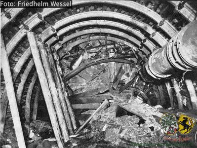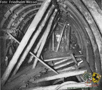 ... schrieben die Herner Zeitungen im März 1958. Damals ereignete sich auf der 6. Sohle der Schachtanlage 3 / 4 ein Grubenunglück, das aber keine Toten oder Verletzten forderte. Gegen 4 morgens löste sich in „Flöz Wilhelm“ durch einen Gebirgsschlag ein Nachfallpacken. Der untere Strebteil, ein Teil der Ladestrecke und die Ladestelle gingen zu Bruch. Die Streb- und Lademannschaft hatte sich aber rechtzeitig in Sicherheit bringen können. Lediglich die beiden Ortshauer Siegfried Schreiber und Martin Krause werden, nachdem der durch den Bruch aufgewirbelte Staub verzogen hatte, vermisst. Doch bald gab es Klopfzeichen an der intakten Wasser- und Luftleitung in der Ladestrecke.
