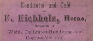 Dort betrieb nun Frierich Eichholz ein Cafe mit diversen Kaufprodukten. 1908 ist er als Rentner aufgeführt. 1910 ist seine Witwe Besitzerin der Immobilie.