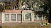 Grabstein mit Platik auf dem alten Friedhof Eickel 2017