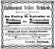 | 13:48, 14. Feb. 2022 | Castroper Anzeiger 1900-09-20-Strünkede-Restauration.jpg (Datei) | 143 KB | Andreas Janik (Diskussion | Beiträge) | Anzeige der Eröffnung der Restauration im Schloss Strünkede am 21. September 1900 im Castroper Anzeiger Nr. 113. Online auf zeitpunkt.nrw | 1 | |