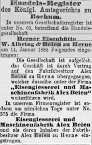 | 15:19, 14. Dez. 2022 | Berliner-Börsen-Zeitung-17-01-1888-Herner-Hüttenwerk-Beien.png (Datei) | 163 KB | Andreas Janik (Diskussion | Beiträge) | [https://www.deutsche-digitale-bibliothek.de/newspaper/item/JLPJCFWSRCWQN66YNO24VTB3QQ7QQUPD?zdb_id=2436020-X&query=Beien&hit=&issuepage=19 Berliner Börsenzeitung vom 17. Januar 1888 online] | 1 | |