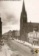 Datei:Bahnhofstraße mit St. Bonifatius Kirche, 1930er Jahre.jpg