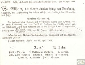 Es dauerte dann auch einige Jahre, bis Herne nach mühevollen Verhandlungen, viel Geduld und hitzig geführten Debatten in ungezählten Sitzungen die Eingemeindungsverträge mit Baukau und Horsthausen unterzeichnen konnte. Mit Unterschrift vom 13. April 1908 durch Wilhelm II., König von Preußen, wurden die Eingemeindungen von Baukau und Horsthausen nach Herne dann amtlich.[2]