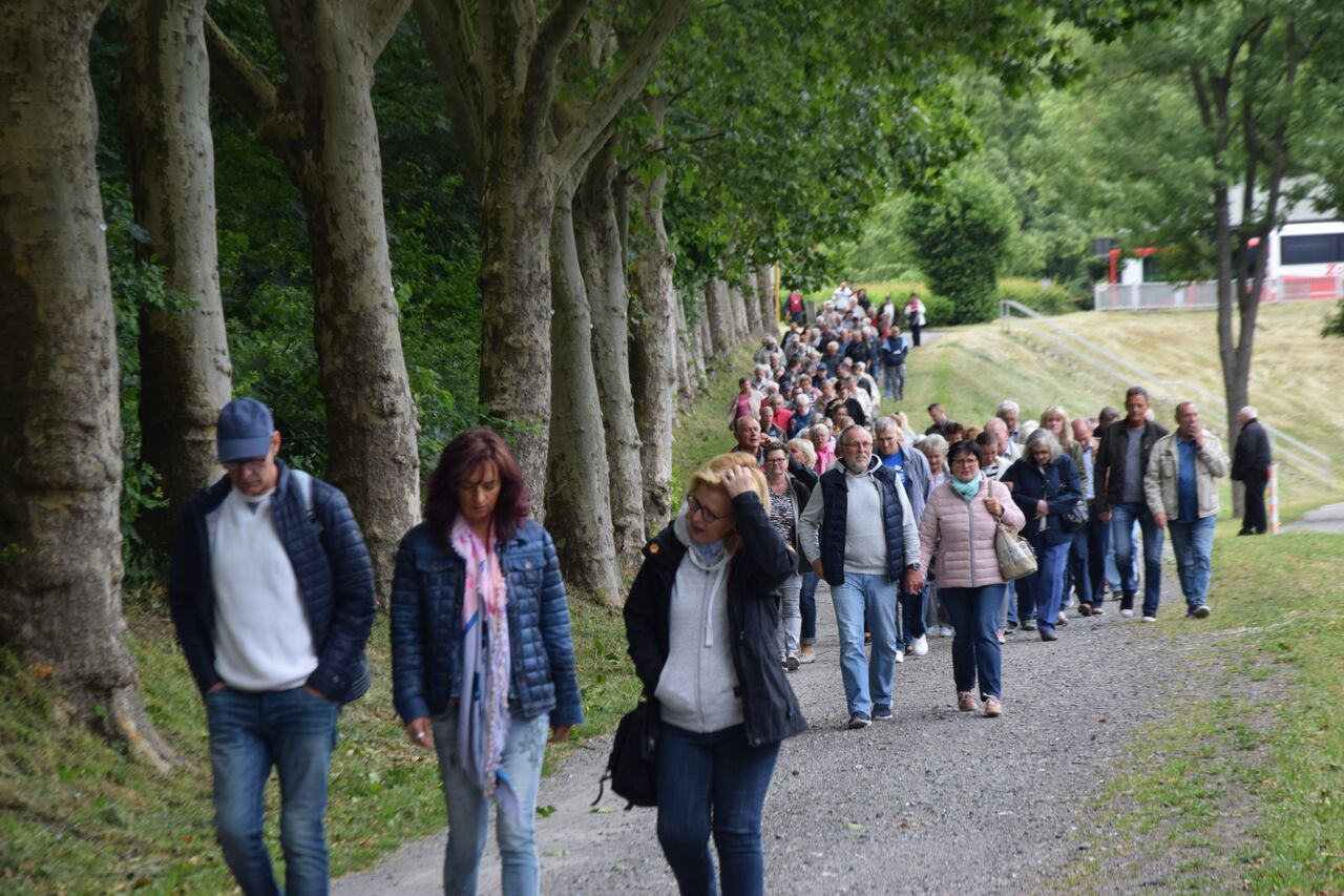 Jubiläumsveranstaltung "100 Jahre Bauverein Sodingen", in Form einer Schiffstour auf dem Rhein-Herne-Kanal. Die Bauvereinsmitglieder auf dem Weg zum Schiff.