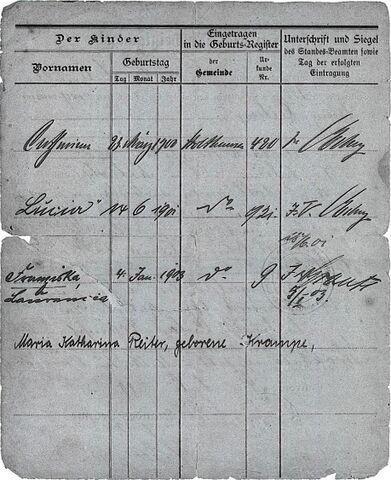 Datei:Rückseite Heirats-Bescheinigung Reiter Krampe.jpg