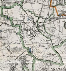 Ausschnitt aus der Karte im Landesarchiv NRW Abteilung Westfalen W 051 / Karten A (Allgemein), Nr. 9496 Castrop-Rauxel (Castrop-Rauxel) Grenzen zu den Gemeinden Börnig und Holthausen 1928 1 : 20 000 30 x 23 farb. Einzeichnung in Druck Regierung Arnsberg Nr. 17715.