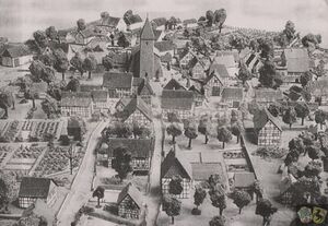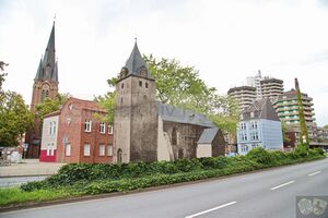 - ↑ Edda Reffelmann vom Herner Fachbereich Vermessung und Kataster fertigte diese Fotomontage 2017 aus Anlass einer Ausstellung des Stadtarchivs Herne zum 500-jährigen Reformationsjubiläum an. Die Fachfrau betonte, dass aus perspektivischen Gründen lediglich der ungefähre Standort der St. Dionysiuskirche dargestellt werden konnte.
