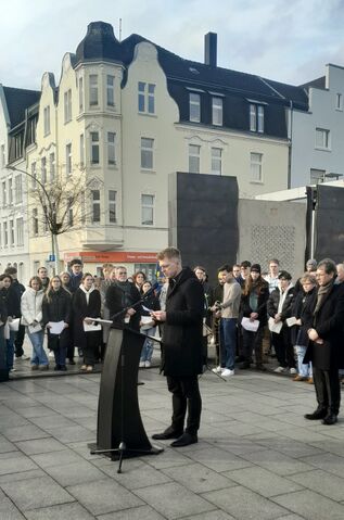 | aktuell | 09:04, 29. Jan. 2025 | 1.836 × 2.775 (2,58 MB) | Andreas Janik (Diskussion | Beiträge) | Gedenktag der Befreiung des KZ Auschwitz am 27. Januar 2025. Beteiligte: Dr. Nils Petrat, Dr. FRank Dudda, Chor der Hibernia Schule. |