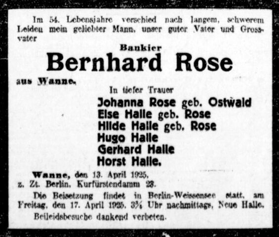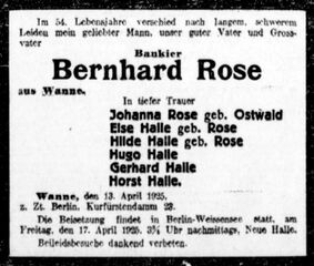 Datei:Traueranzeige Bernhard Rose 1925.jpg