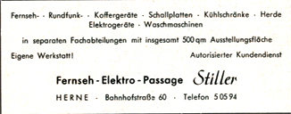 Die Handelsfirma "Fernseh-Passage Martin Stiller" wurde am 4. April 1960 ins Handelsregister (HR A 1385/ HR A 12) eingetragen. Gründer und Inhaber war der Techniker Kaufmann Martin Stiller. Am 16. August 1974 ging die Firma auf Horst Stiller über und führte den Namen Fernseh-Elektro-Haus Stiller Inh. Horst Stiller. Am 16. Juli 1980 ist die Firma von Amts wegen erloschen.