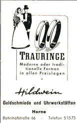 Der Goldschmied Eugen Hildwein (Geb. am 17. Juli 1897 in Pforzheim-Niefern) siedelte nach 1950 und vor 1954 von seinem Stammgeschäft Heinrichstraße 14 ins Haus Bahnhofstraße 66 über. Vor 1938 war er im Haus Goethestraße 21 ansässig.