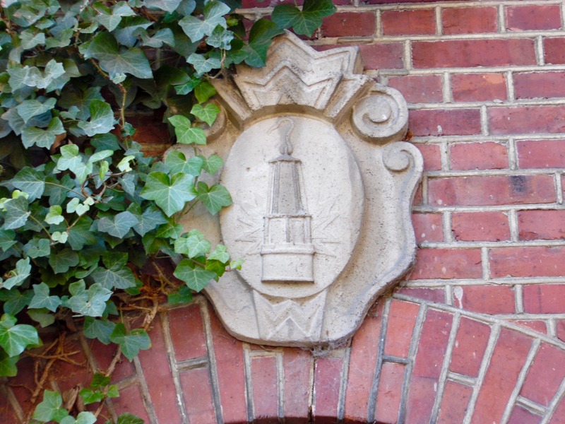 Waldfriedhof, linkes Torhaus, symbolische Darstellung "Bergbau"